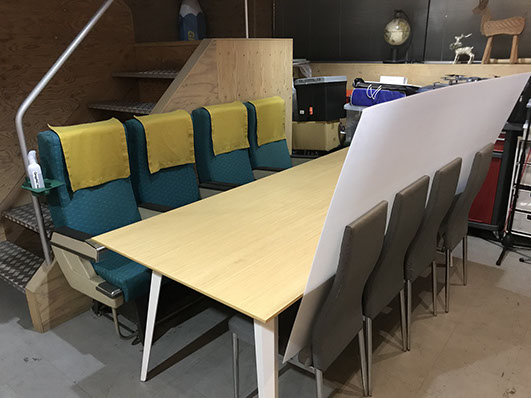 教室はパーテーションで三密を回避した専用デスクによるシミュレーションでの講習です。3階建て各階に次亜塩素酸ナトリウムスプレー常時設置、アルコール殺菌設置しております。